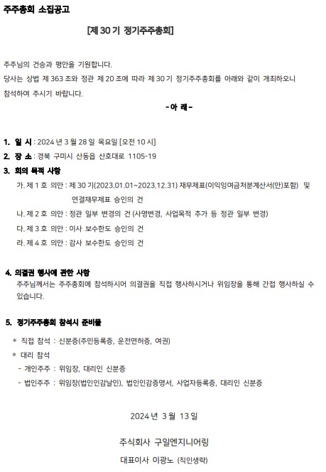 제 30기 정기주주총회 소집 공고