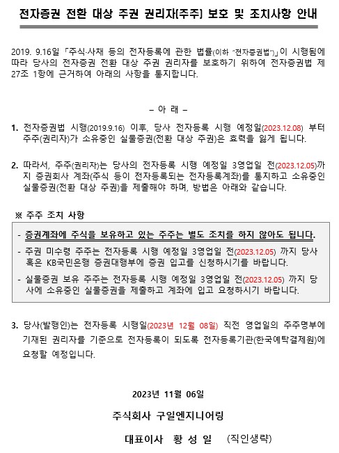 전자증권 전환 대상 주권 관리자(주주) 보호 및 조치사항 안내